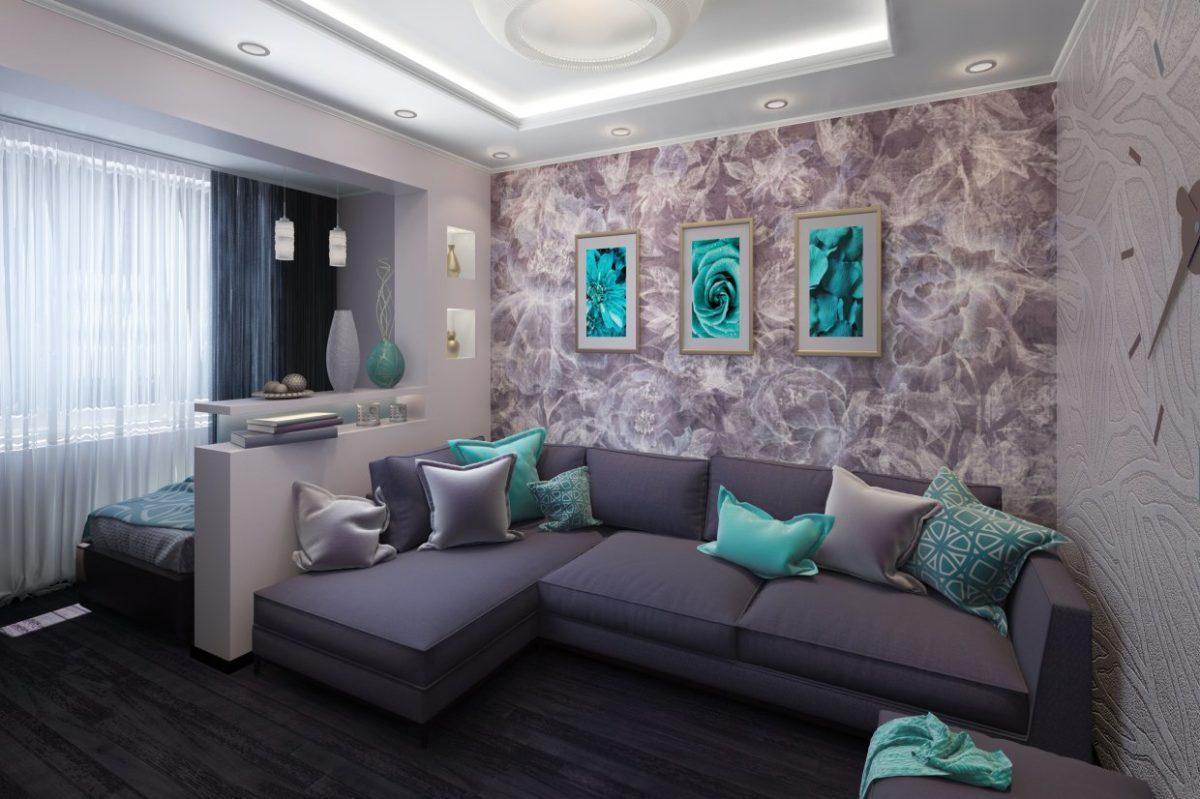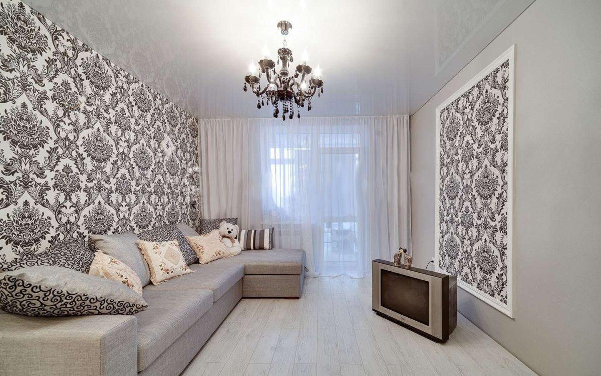 Часто площадь гостиной не позволяет реализовать классический интерьер в его привычном понимании. Акцентом в декоре становятся именно стены с наклеенными на них обоями. Они должны быть яркими и украшенными стильными узорами.