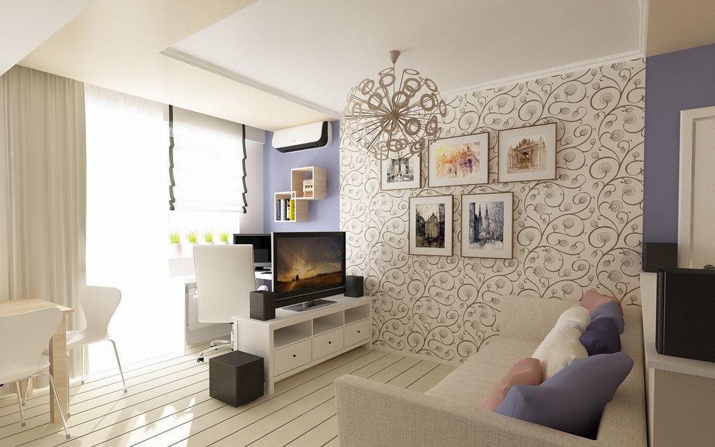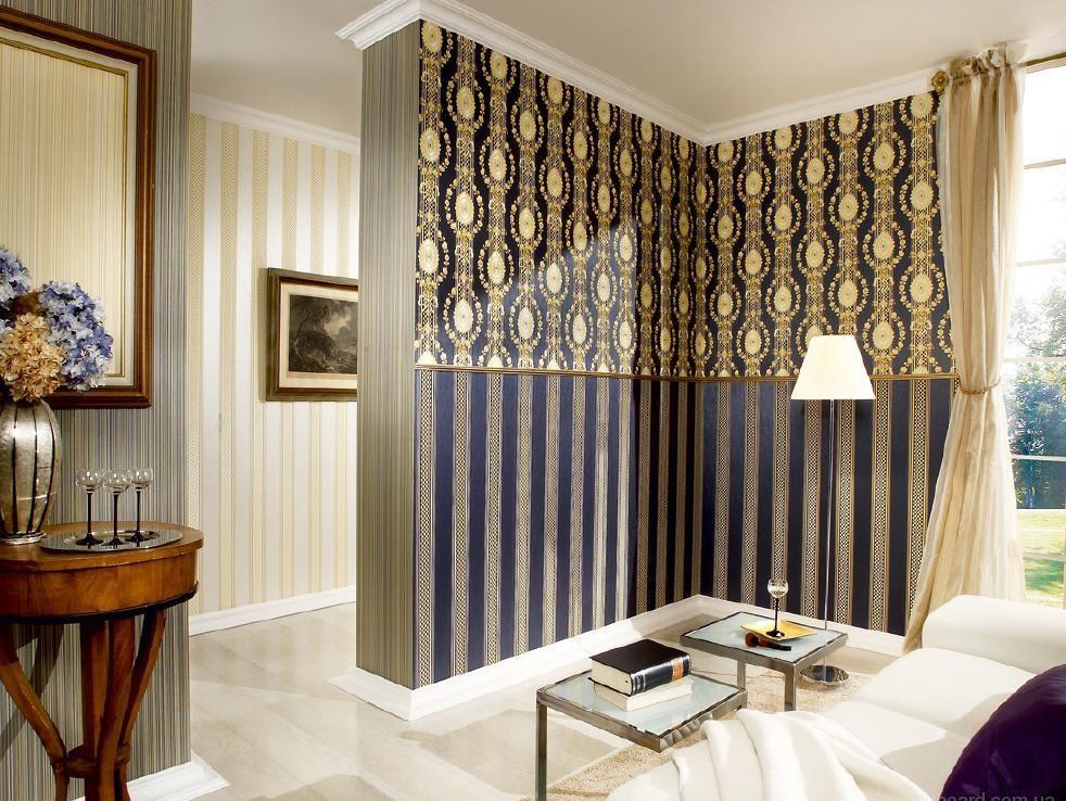 Для маленьких гостиных идеальным вариантом будет комбинирование обоев