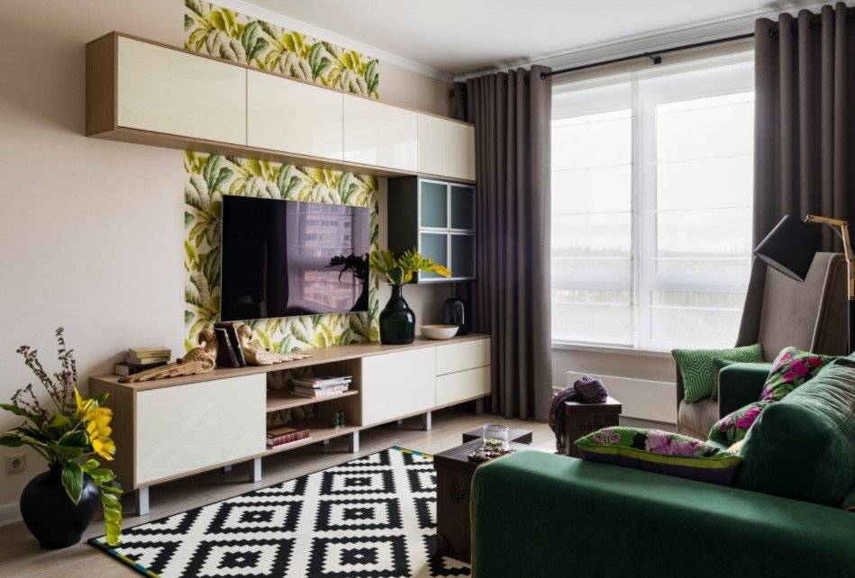 - Пространство гостиной находится в современном жилье вроде квартиры-студии;