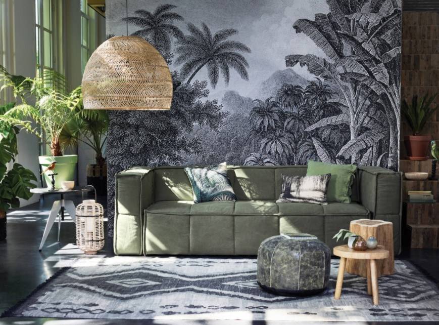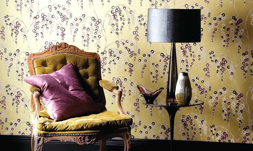 Стиль другой, принцип подбора обоев тот же: цвета должны повторятся в обивке мебели, аксессуарах или в текстиле
