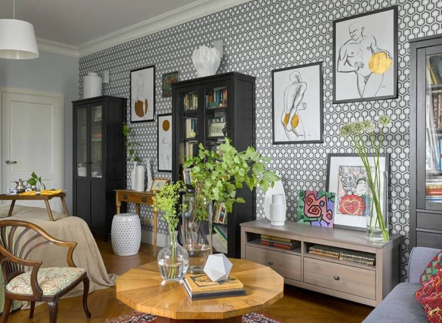 Ворвавшись в интерьеры к концу 10-х годов, эклектика удерживает лидерство. На фото дизайна обоев 2020 года можно почерпнуть множество примеров сочетания несочетаемого.