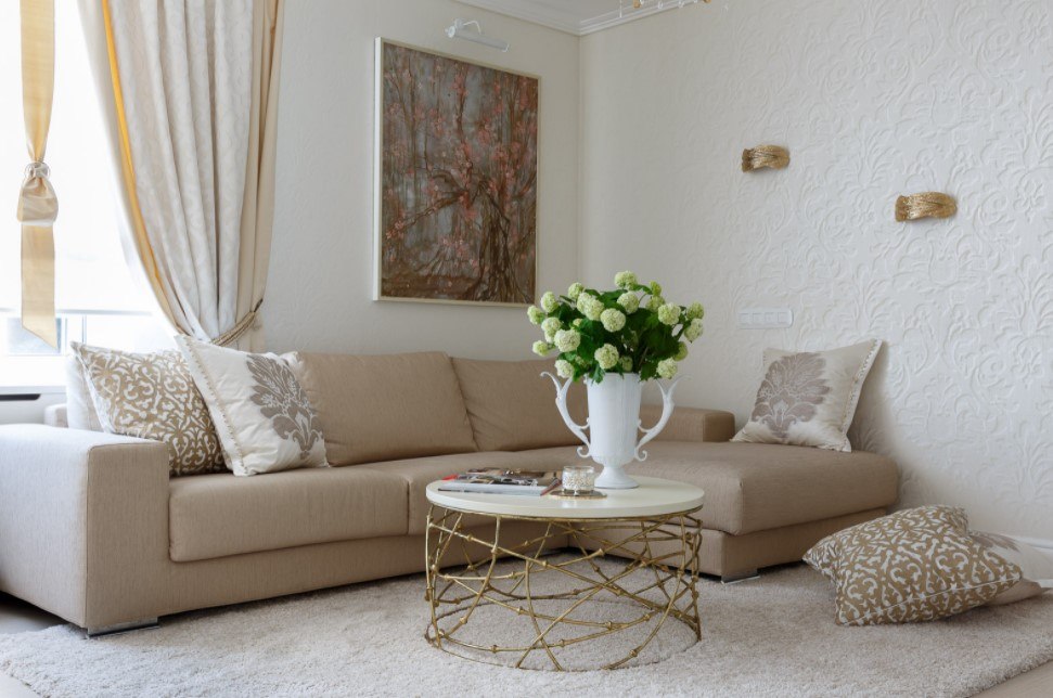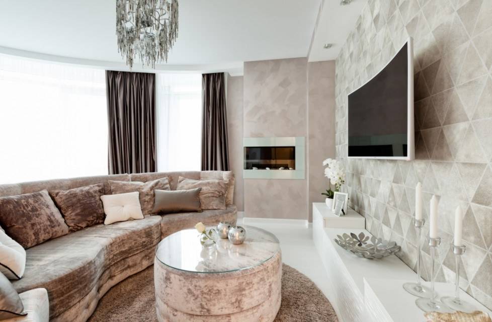 Главное правило – выбирая разные фактуры, необходимо использовать один цвет, чтобы избежать перегруженности интерьера, ведь жилая комната должна настраивать на спокойный лад.