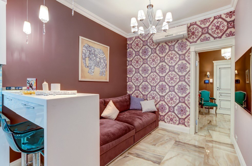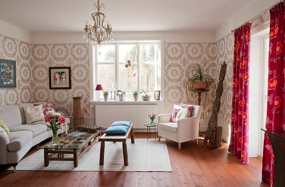 - В тесных комнатах лучше избегать использования крупных и ярких узоров, иначе пространства станет еще «меньше».