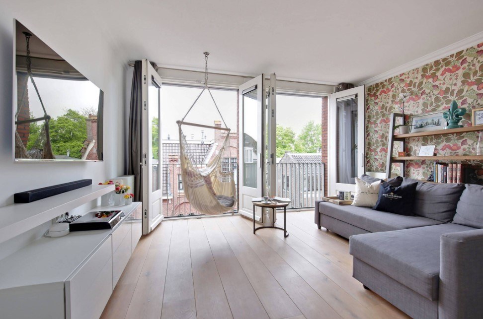 Этот стиль любит светлые тона и дерево. Мотивы мы можем выбрать и для декора стен, оклеив одну из них узором, например, имитирующим березу, а вторую – имитирующим древесину из досок или сделав ее однотонной белой или серой. Такие решения очень популярны в последнее время. Тема стволов березы в дизайне жилых комнат является хитом. Для естественной аранжировки обои с мотивом деревьев станут идеальным вариантом.