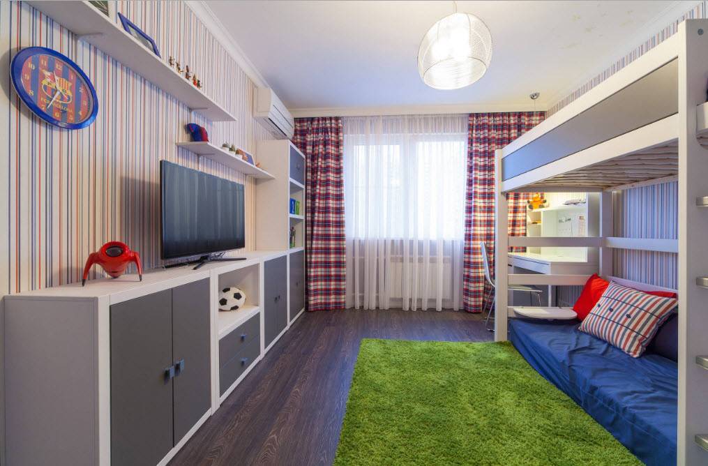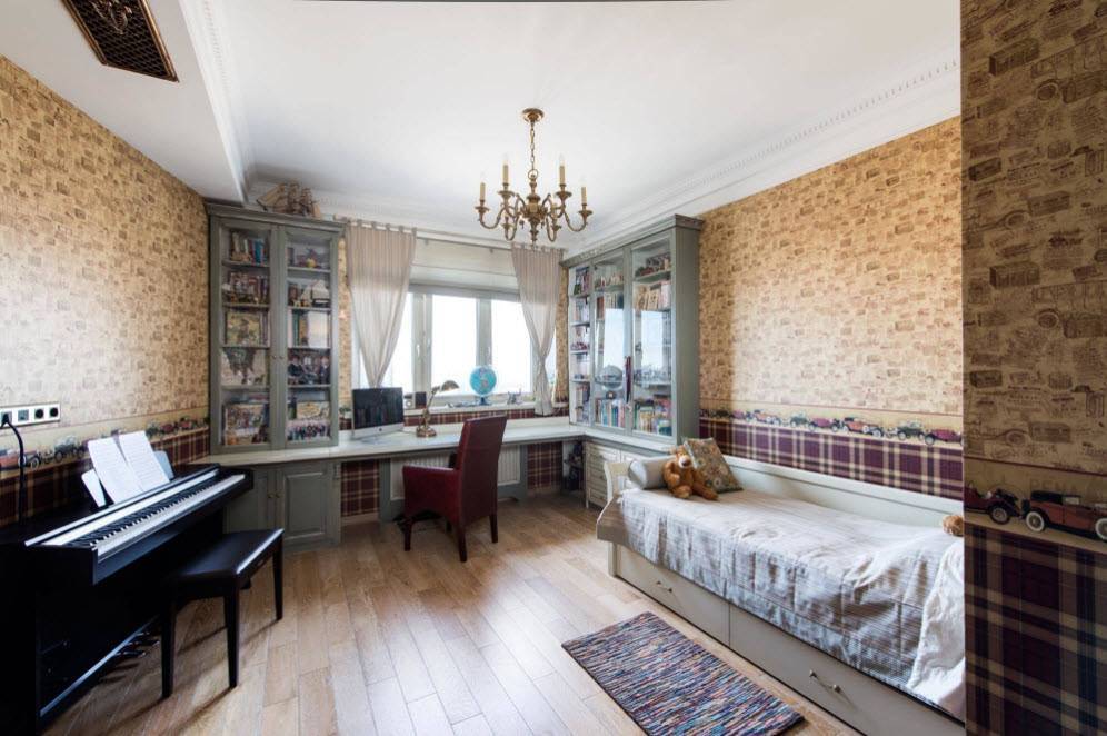 В случае, если комната достаточно просторная и светлая, с потолками традиционной высоты, варианты оформления могут быть любые.