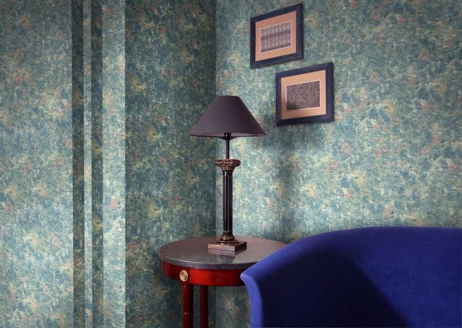 - Первый вид имеет волокнистый нижний слой, а сверху покрыт винилом. Такие обои не боятся воды и имеют большую ширину рулона.