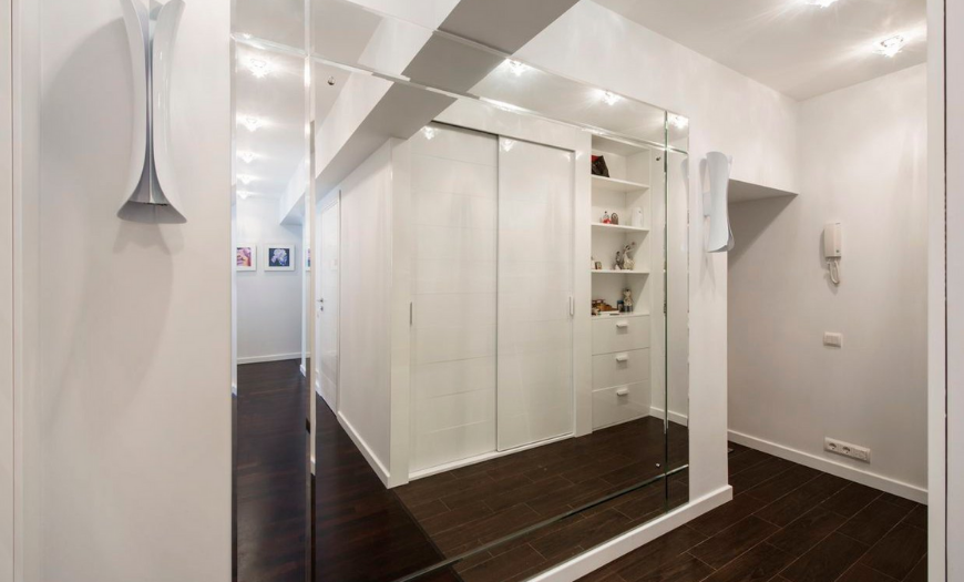 В условиях ограниченного пространства практически не остается свободных поверхностей для отделки и размещения мебели. В небольшом помещении устанавливают светлые шкафы-купе или модульные прихожие.