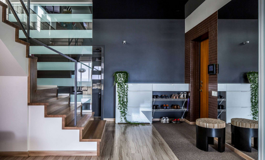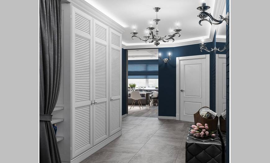 - Необходимость стилистического соединения всех примыкающих комнат. Прихожая станет не только «лицом» квартиры, но и местом соединения разных комнат. При открытии дверей в примыкающие помещения не должен создаваться дисбаланс. Не обязательно для дизайна использовать единственный стиль, но направления должны гармонично сочетаться.