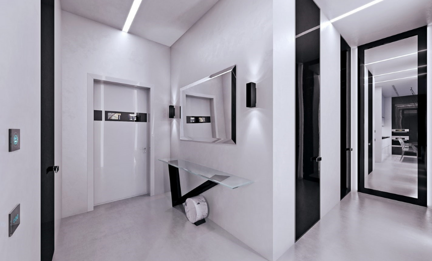 К проходным помещениям в интерьере обычно относятся без инициативы. Обычно уделяется много внимания кухне, спальне или гостиной, но не прихожей. Хорошее расположение должно учитывать дизайн интерьера каждой комнаты. Универсальным решением для современных коридоров станет устройство минималистской планировки на основе белого. Такой цвет станет хорошим решением для любого интерьера. Вы можете легко подобрать необходимое оборудование, сиденья или украшения. Любой цветовой акцент на фоне белого выглядит величественно, однако преувеличивать количество цветов не стоит. Белая прихожая также будет работать в узкой комнате, с которой часто сталкиваетесь в небольших квартирах.