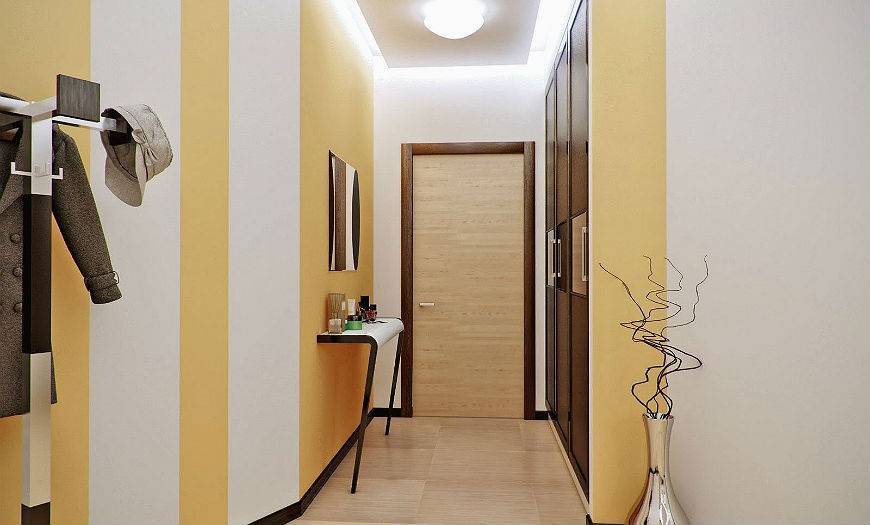 - низкий потолок можно визуально приподнять, использовав для этого обои с вертикальными полосами . Впрочем, от такого приема следует отказаться в узком коридоре – вертикальные полосы зрительно сделают его еще уже