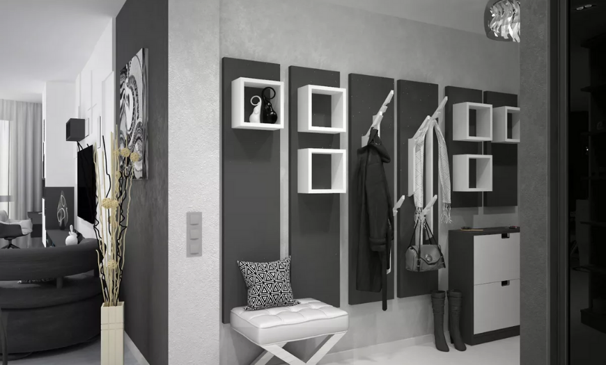 - Использование контрастных цветов в отделке. Черно-белые прихожие, а также комнаты, отделанные в сочетании черный-белый-красный, способны заиграть совсем по-новому и превратить маленькую прихожую в уютное и стильное помещение.