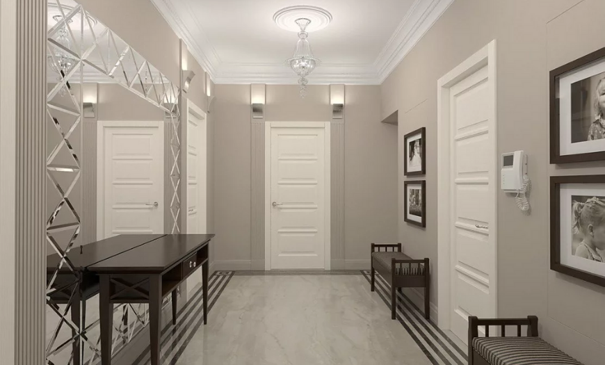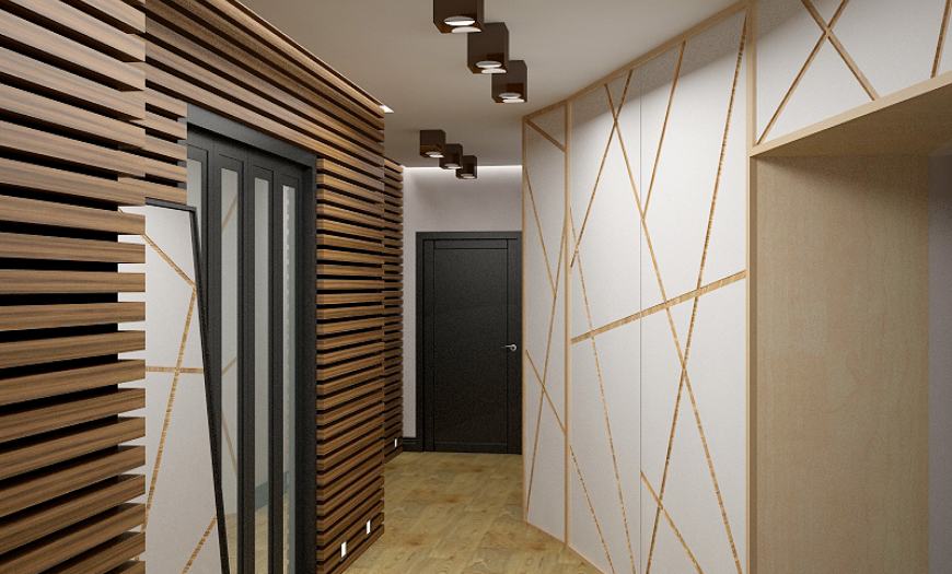 Горизонтальные и вертикальные линии смогут создать гармонию при восприятии форм в вашем коридоре.