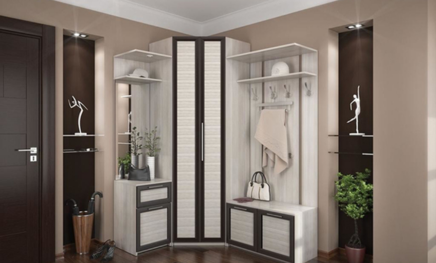 Правильная мебель играет далеко не последнюю роль в оформлении и зонировании коридора и прихожей. Наиболее необходимые здесь предметы: