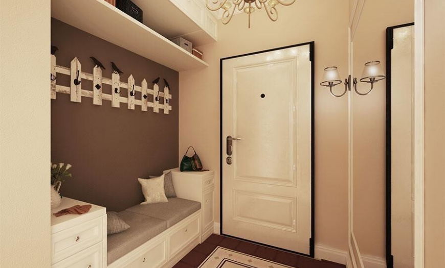 Такая палитра цветов позволяет сделать небольшое помещение визуально просторнее и объемнее. Использование светлых оттенков в миниатюрной прихожей придает интерьеру уют и наполняет теплой атмосферой.