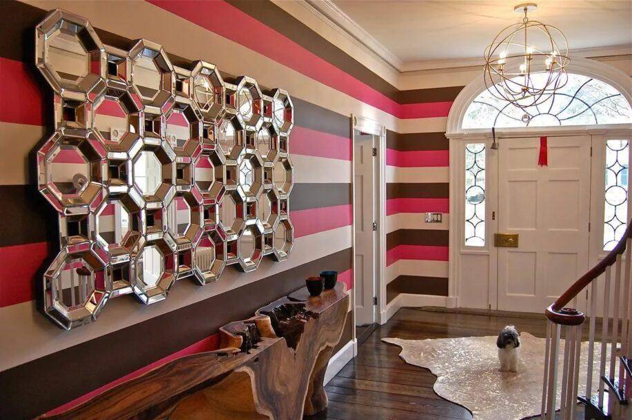 Если нравятся обои с геометрическими линиями, то нужно помнить, что горизонтальные полосы тоже могут визуально делать помещение больше, и они будут отличным решением для узких коридоров.