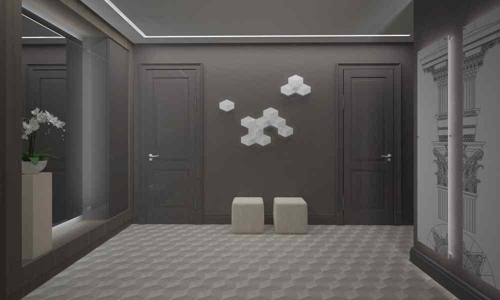 Больше всего подойдет “металлический” оттенок серого цвета: ваша прихожая будет выглядеть по-настоящему современной