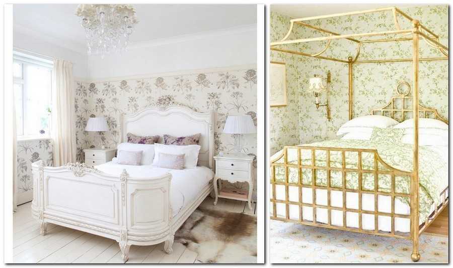 Как видно по фото, для спальни прованского стиля подбираются обои исключительно светлых цветов. Они могут быть теплых или более холодных оттенков, с цветочными или геометрическими орнаментами, но обязательно не навязчивыми для глаз и расслабляющими после тяжелого трудового дня.
