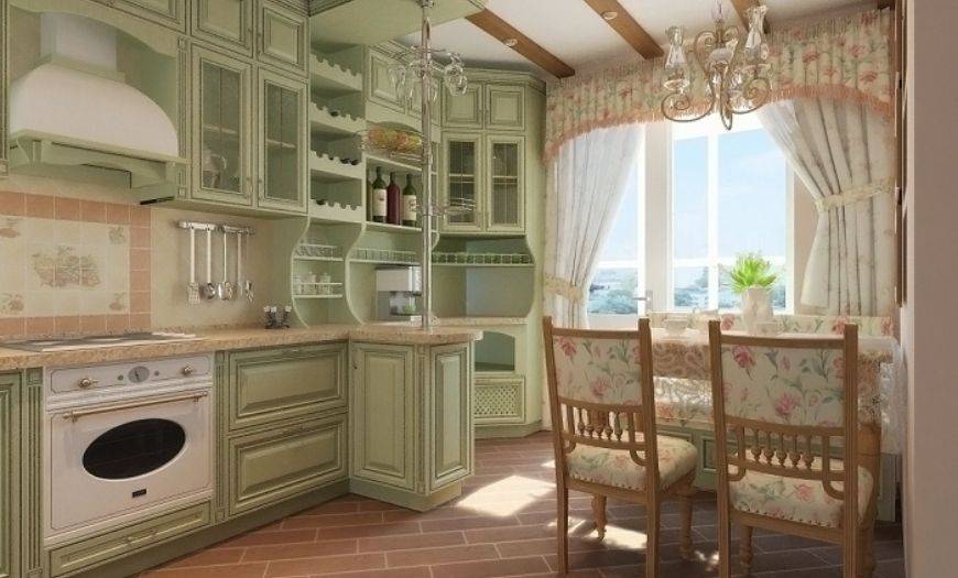 Кухню в стиле прованс могут оформлять полотна с мелким цветочным или растительным узором, цвета приятные, не яркие.