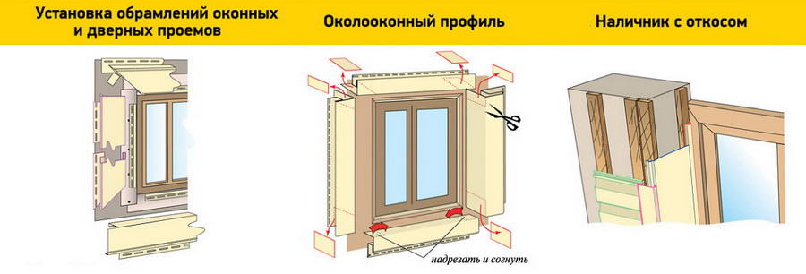 - Доборные элементы. В зависимости от выбранной технологии, понадобится стартовая рейка, J-профиль, внутренний угол, софит, околооконная планка (при наличии окна с откосом) и наличник (проем без углубления).