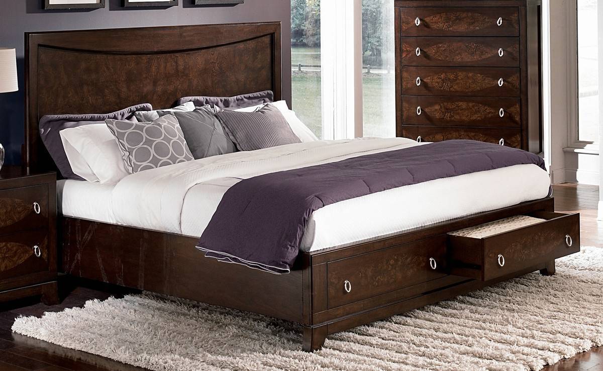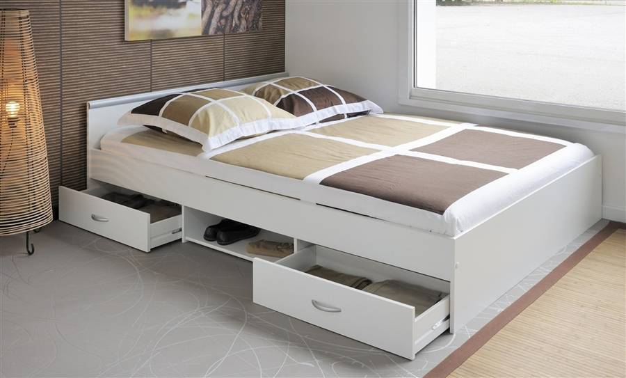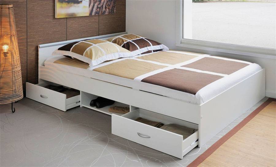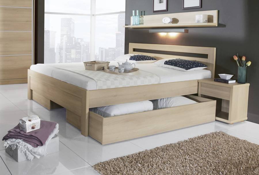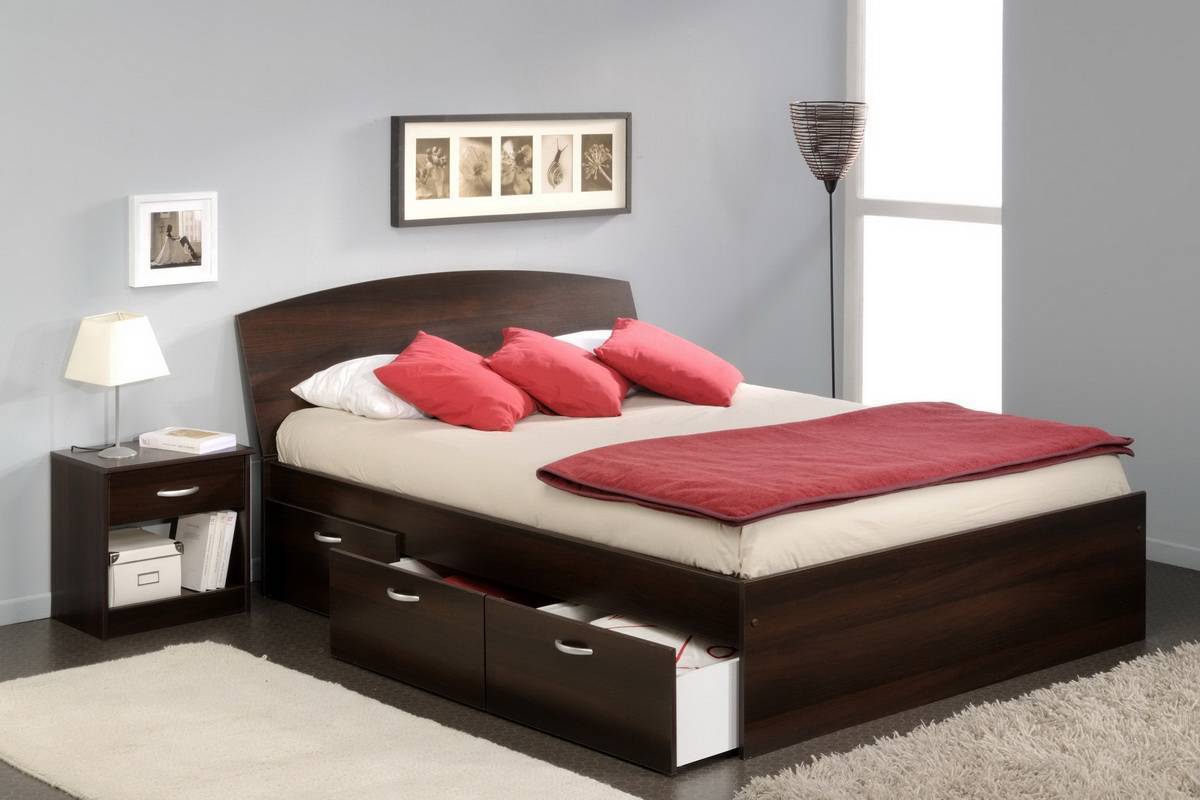 Разновидности двуспальных кроватей с выдвижными ящиками