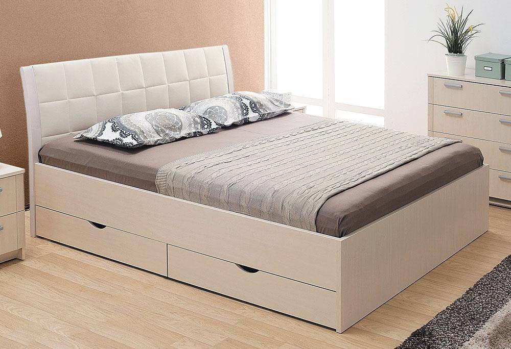 Разновидности двуспальных кроватей с ящиками