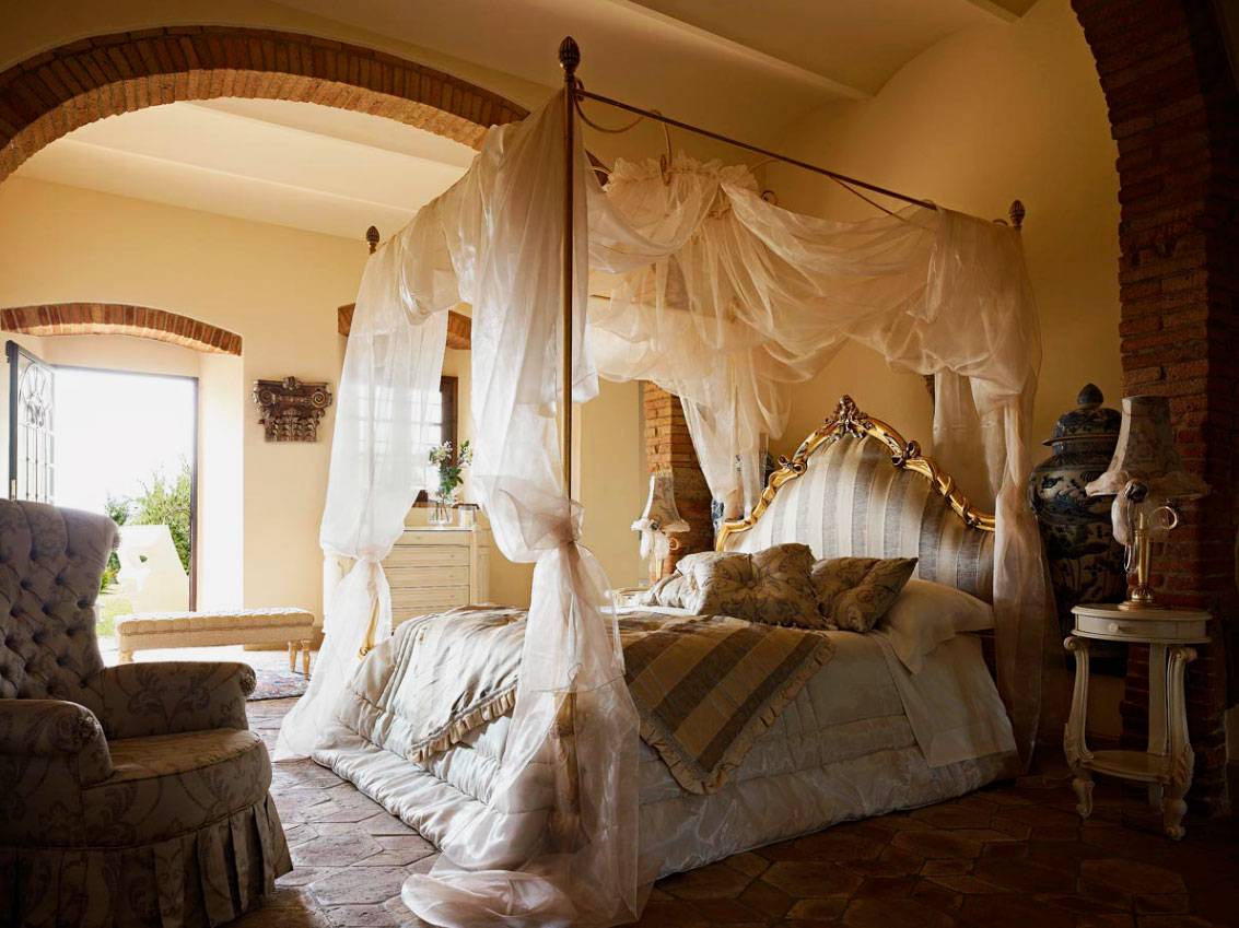 - Рококо круглое ложе с высоким каркасом, к которому ведут ступеньки, сужающиеся в виде пирамиды.
