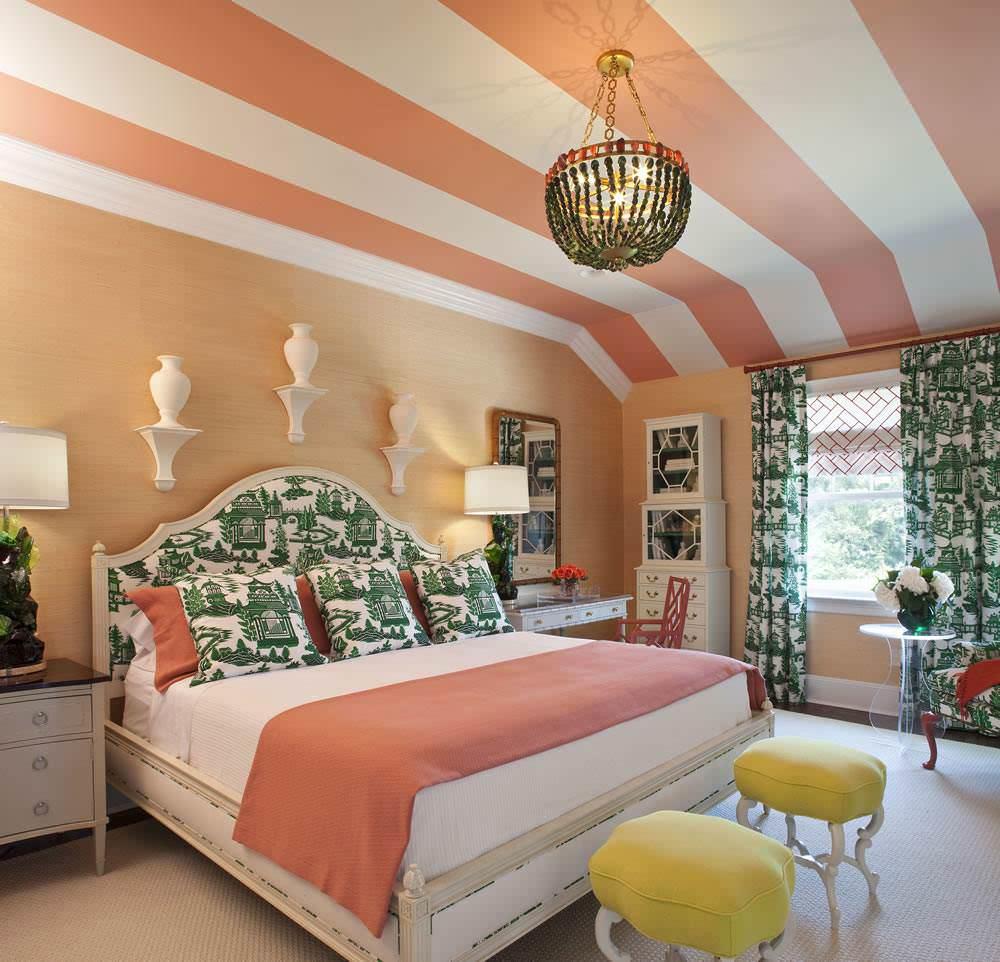 Поскольку спальня — место отдыха, где мы будем расслабляться, не надо использовать в ней насыщенные яркие цвета. Для спальни прекрасно подойдут мягкие пастельные оттенки розового и голубого, зелёный цвет. Гармоничным дополнением станет коричневое дерево.
