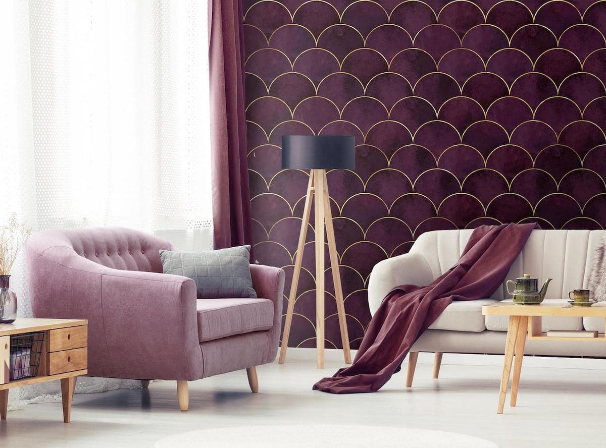 Мебель в гостиной, выполненная в едином стилевом решении с настенными обоями