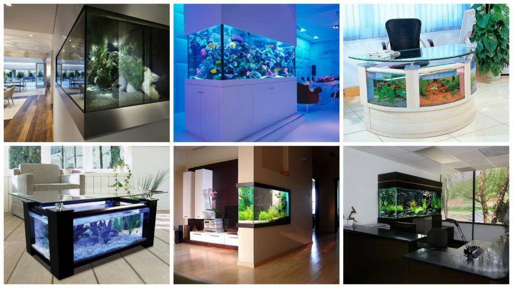 Существует также оригинальный вариант для вашего интерьера — аквариумы, которые изготавливаются в форме какого-либо предмета мебели. Конечно, такой вид аквариума потребует от вас немалых финансовых вложений, однако плюсом будет то, что вам не придется дополнительно приобретать специальное оборудование — оно уже будет предварительно встроено в конструкцию.