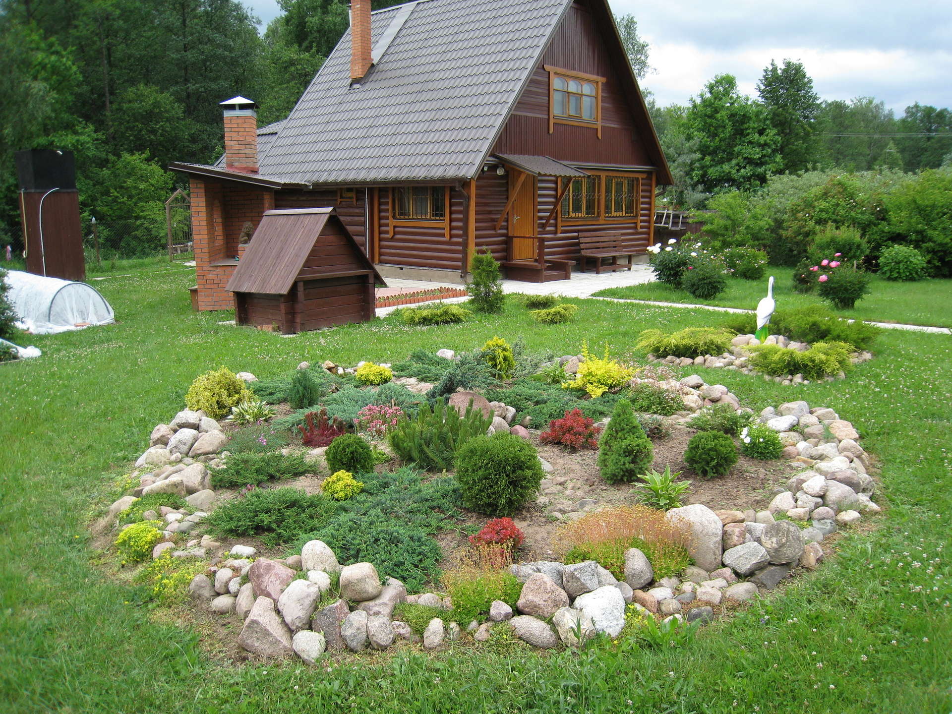 Часто трудности возникают при планировании дачного участка с неровным рельефом. При его разработке следует учесть движение воды во время дождей и таяния снега. В низине, где она собирается, выгоднее всего сделать искусственный водоем, окружив его каменным садом. Летом здесь будет самое комфортное место для уединенного отдыха.
