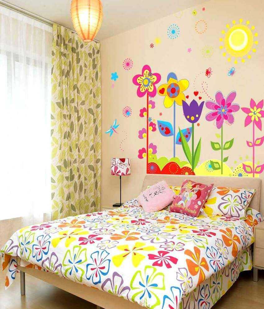 При этом необходимо выбирать светлые и спокойные цветовые оттенки, такие цвета характеры для детских комнат. Стены так же можно красочно разрисовать, либо нанести изображение героя из любимого мультфильма, если это сделать весьма сложно то можно просто на стену наклеить бумажных бабочек или птичек. Здесь все зависит от вашего воображения.