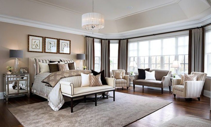 С помощью ковров легко можно зонировать пространство спальной, если оно достаточно велико.