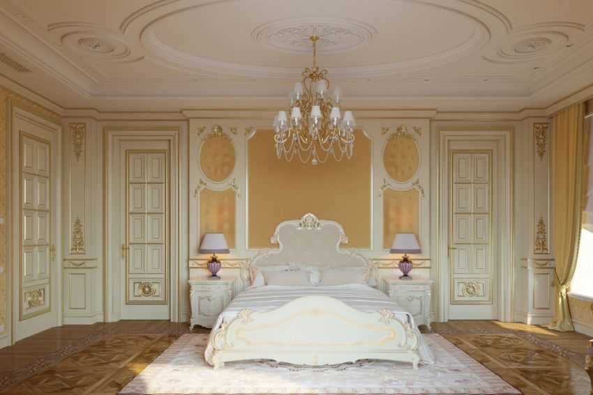 Спальня в классическом стиле имеет сходство с дворцовыми покоями, где каждый предмет обстановки является частью общей композиции.