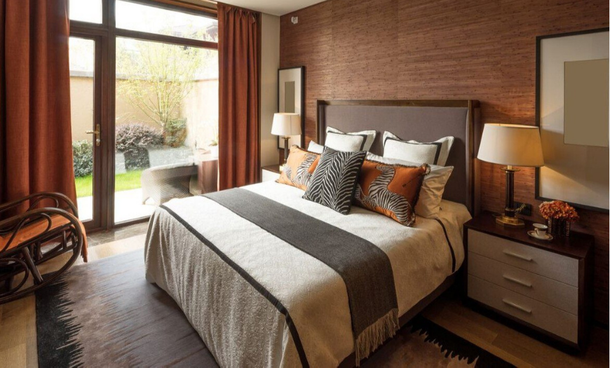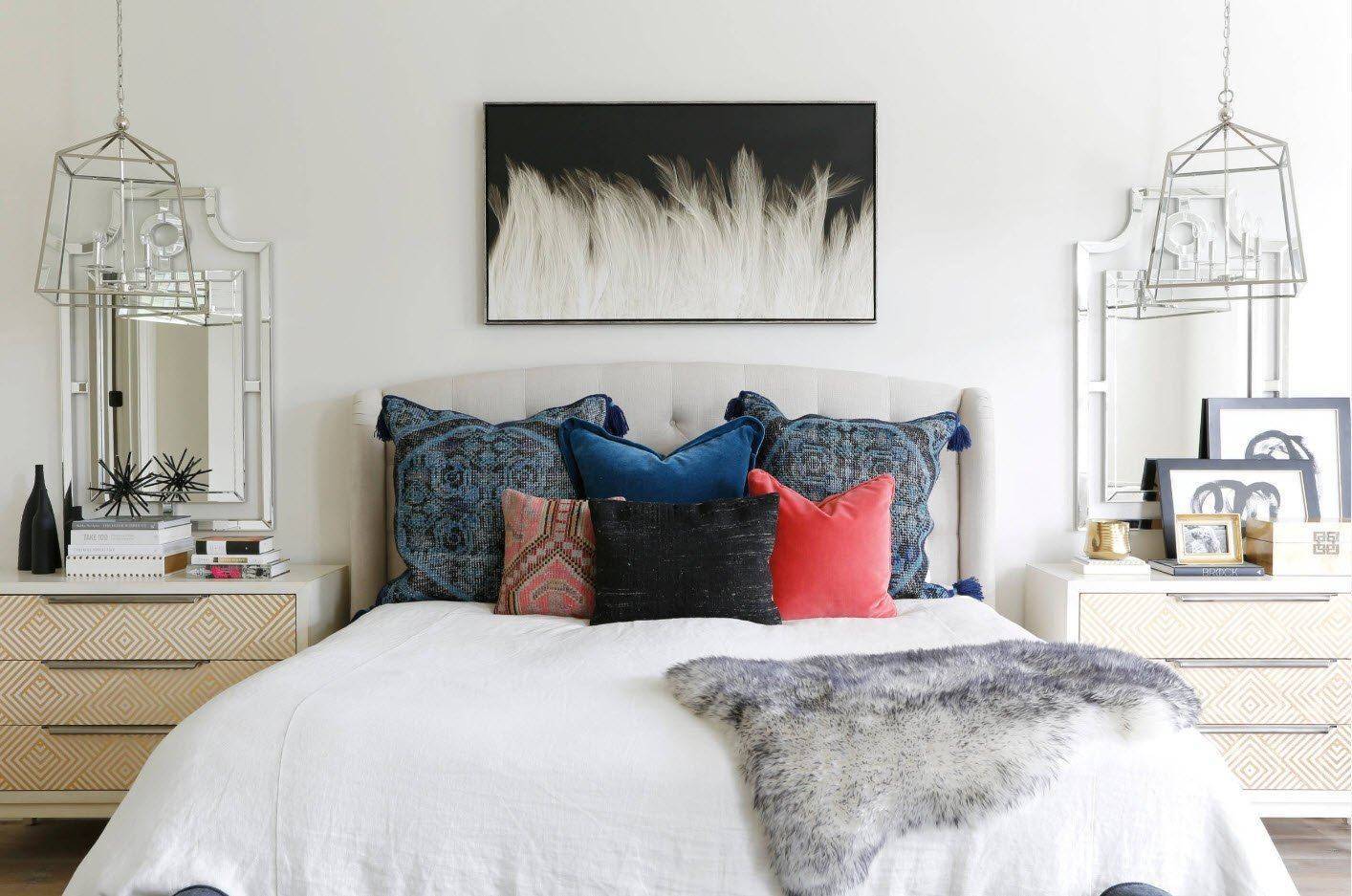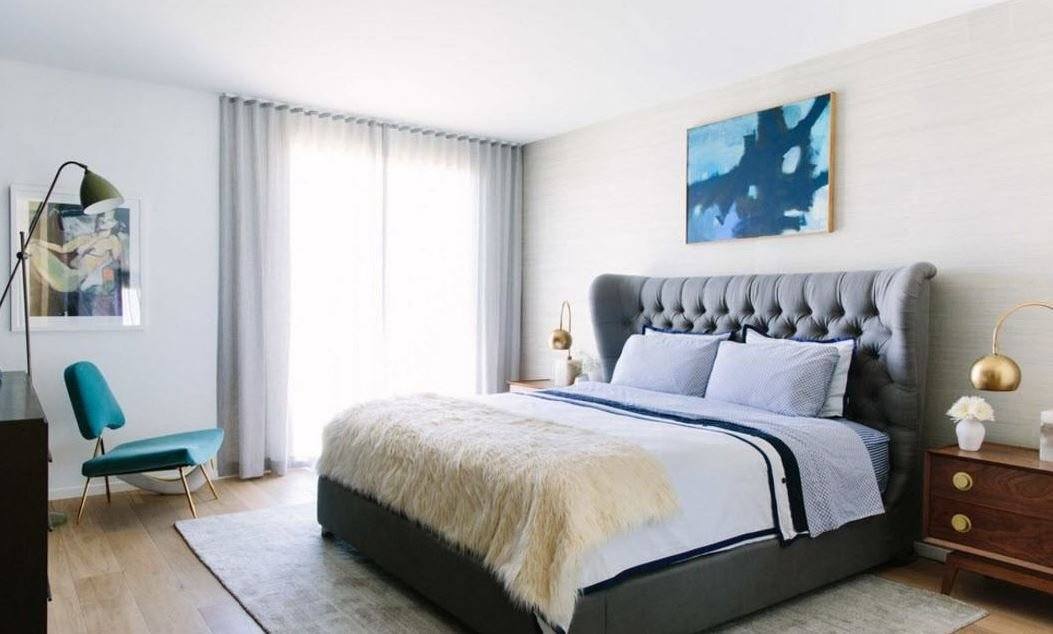 - Создать интересный и запоминающийся вид спальни с помощью акцентной стены, которая украсит изголовье кровати и обеспечит дополнительное зонирование и привлекательность.