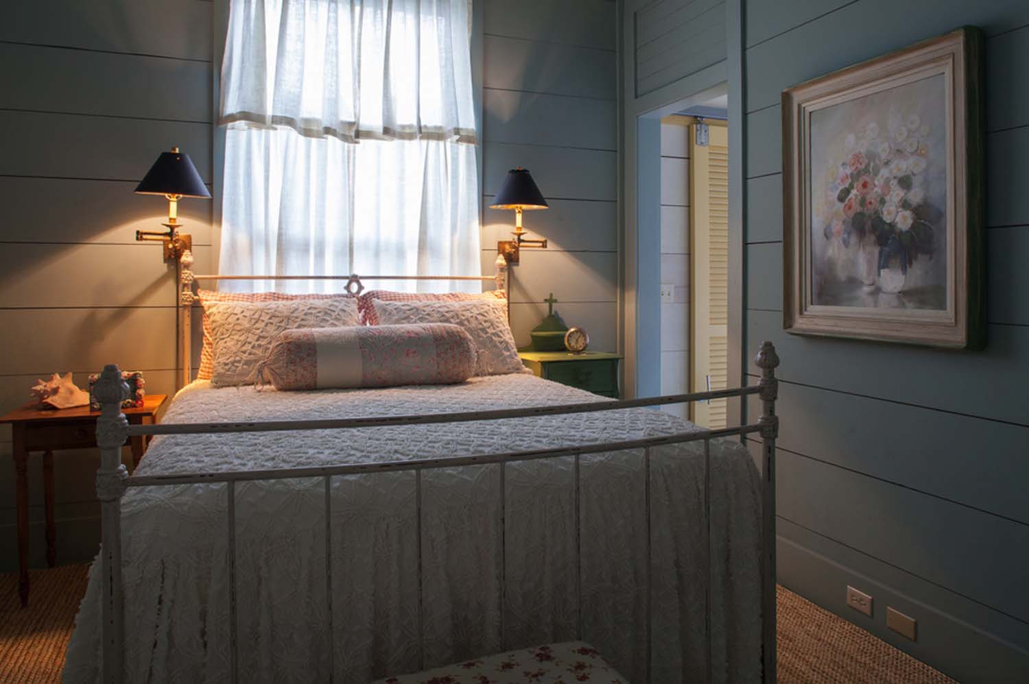 В такой спальне вам не захочется иметь много цифровой техники. Спать будет комфортнее, если окна будут закрываться шторами или жалюзи. В то же время в комнате должно быть больше света, значит, необходимо большое окно. Для цветового оформления такой спальни подойдут сочетания белого с голубым, розовым, зелёным. Удачными будут приглушённые пастельные тона.
