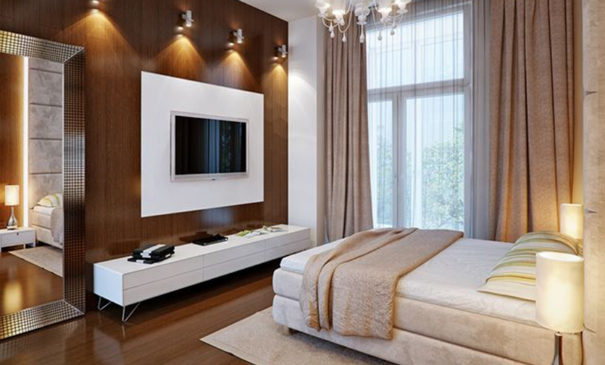 Красивый дизайн спальни в квартире – несомненное украшение жилого пространства. Некоторые хозяева предпочитают совмещать место для сна с кабинетом, гардеробной, гостиной и даже фитнес-залом.