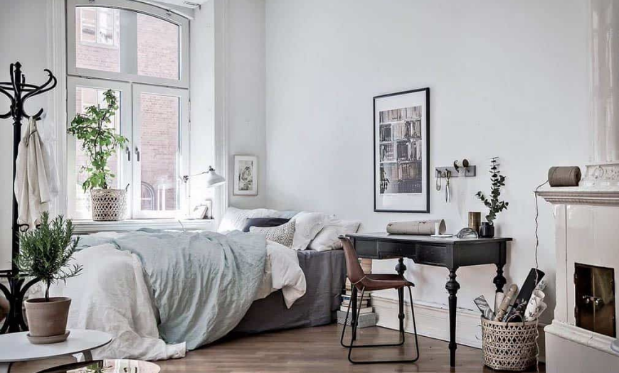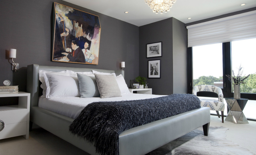 Так, если вы планируете превратить спальную комнату в место, где вы сможете брать силы и энергию для будущего рабочего дня, то можно разбавить белый цвет контрастным черным, что позволит добиться по-настоящему стильного эффекта.