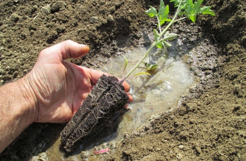 Поливать каждый куст нужно следующим образом — примерно 0,5 л на одно растение. Такую процедуру надо проводить на начальном этапе развития томата. Это позволяет получить требуемые для роста и развития компоненты.