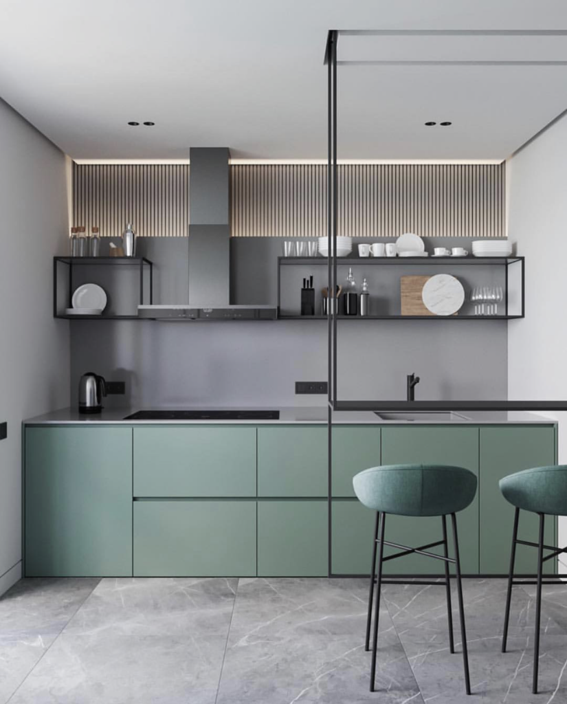 скрытые акценты (например, внутренние стенки шкафчиков, выкрашенные в яркий оттенок);