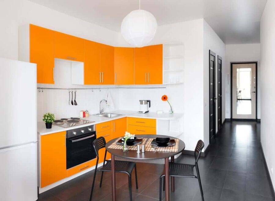 В маленькой кухне оранжевый можно использовать в качестве акцента