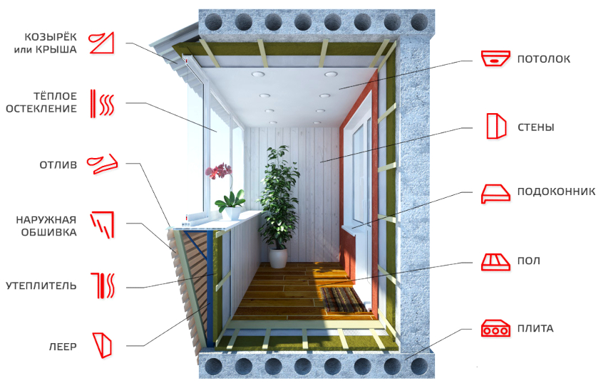 Чтобы утеплить балкон нужно создать хорошую тепло- и влагоизоляцию стен, пола и парапета