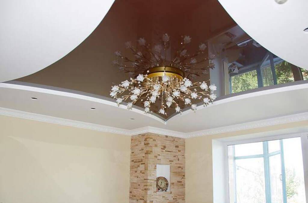 Монтируются на крюк в потолочном перекрытии. У люстры есть крепеж, с помощью которого и подвешивают конструкцию. При установке в полотне делают отверстие, через которое протягивают подвес. Крупные люстры советуют выбирать для просторных комнат, соблюдая при этом выбранный стиль интерьера
