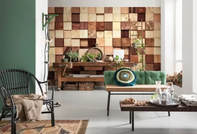 Деревянная стена в интерьереИсточник kuvatapetit.fi
