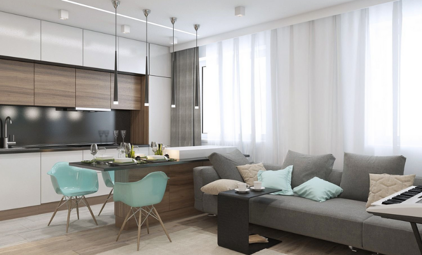 Альтернативное решение – объединение гостиной с кухней.