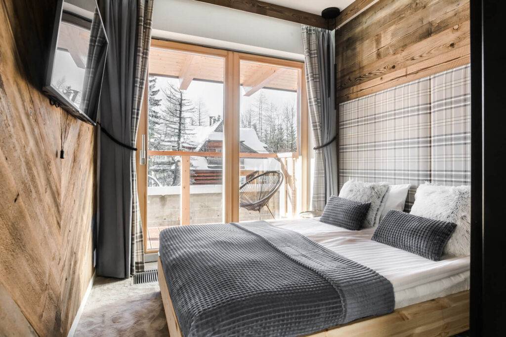 Уютный и натуральный альпийский стиль шале в интерьере спальни