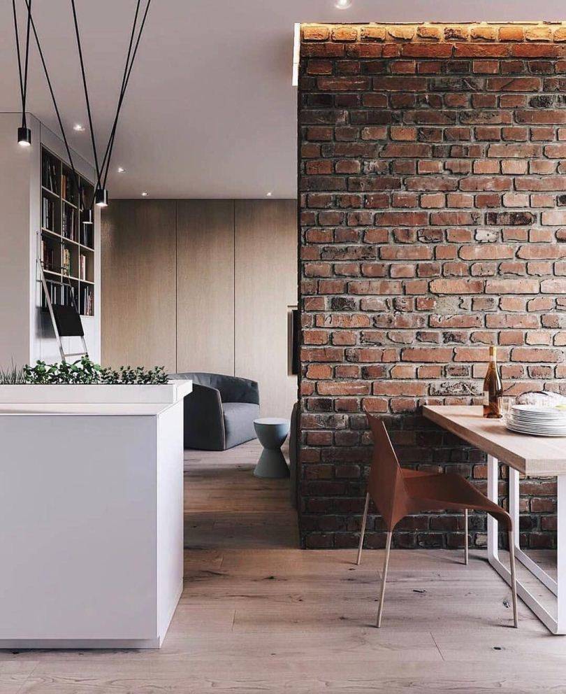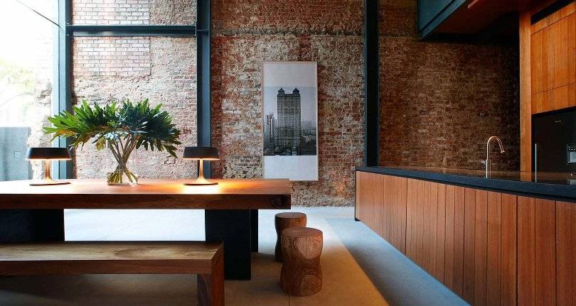 Камень и кирпич в дизайне помещения идеально подходит для стиля индастриал.