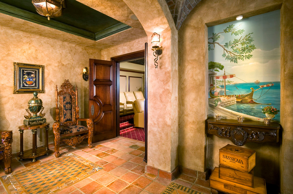Сочетание прочных материалов и художественной отделки формирует оригинальный интерьер, который не требует ежедневного ухода и легко обновляется.