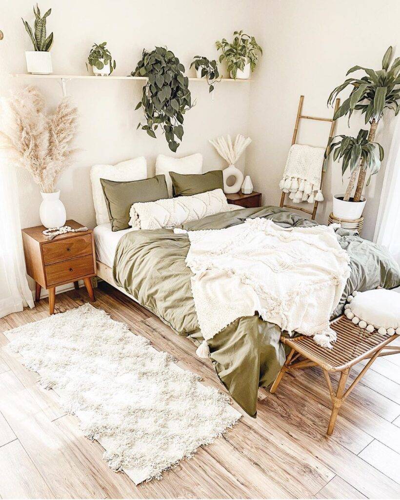 - оливковый цвет стен в спальне — по этой же причине в спальне очень популярен оливковый. Зелень оказывает на нас лечебное действие и помогает нам заснуть;