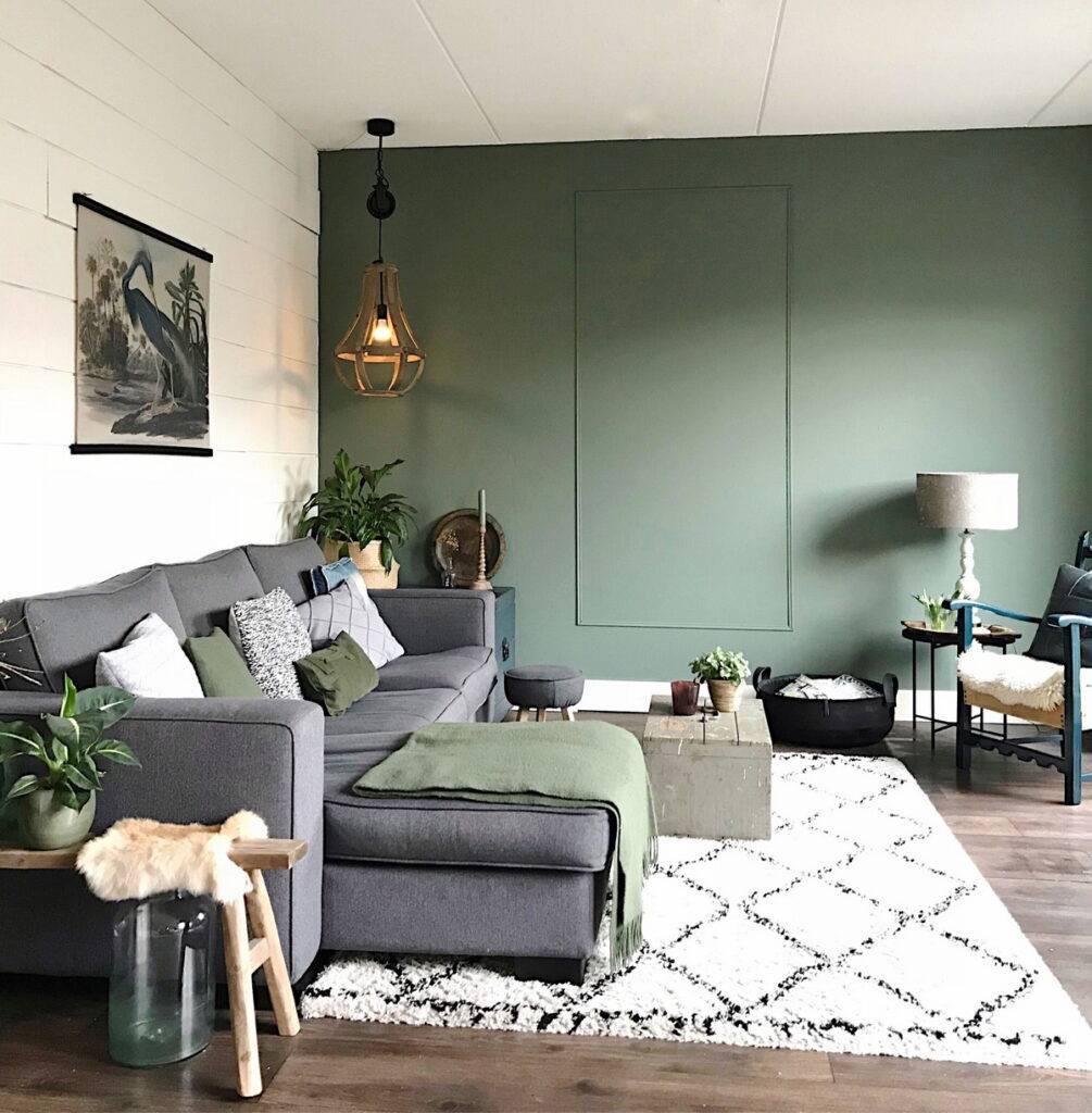 Эта оптимистичная гамма цветов спектра зеленого поможет согреть комнату.