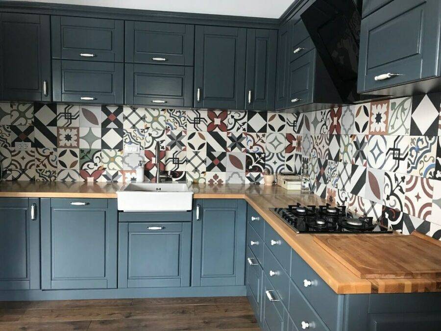 Популярны сиреневые и синие фасады, актуальны контрасты черного, белого, красного. Специалисты советуют только не переборщить с желтым, фиолетовым и зеленым. Если стены довольно яркие, мебель должна быть выдержана в нейтральных тонах: белом или бежевом, сером.